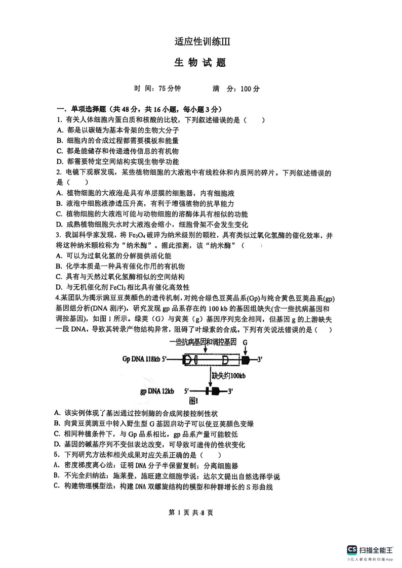 山西大学附属中学校2025-2026学年高三下学期4月阶段检测 生物.pdf