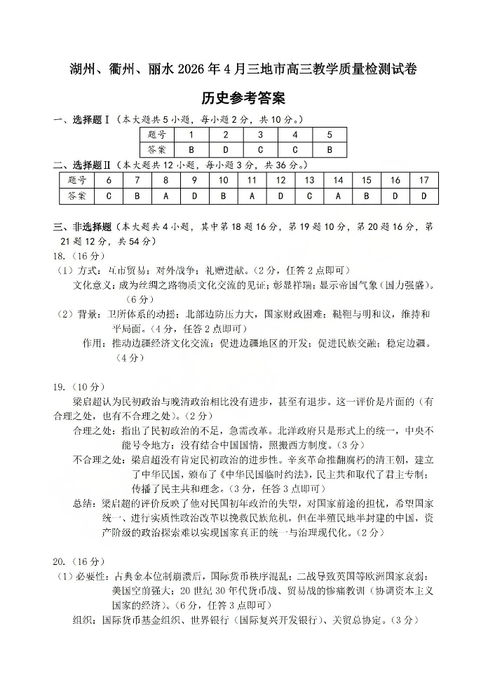湖州、衢州、丽水2026年4月三地市高三教学质量检测 历史答案.pdf