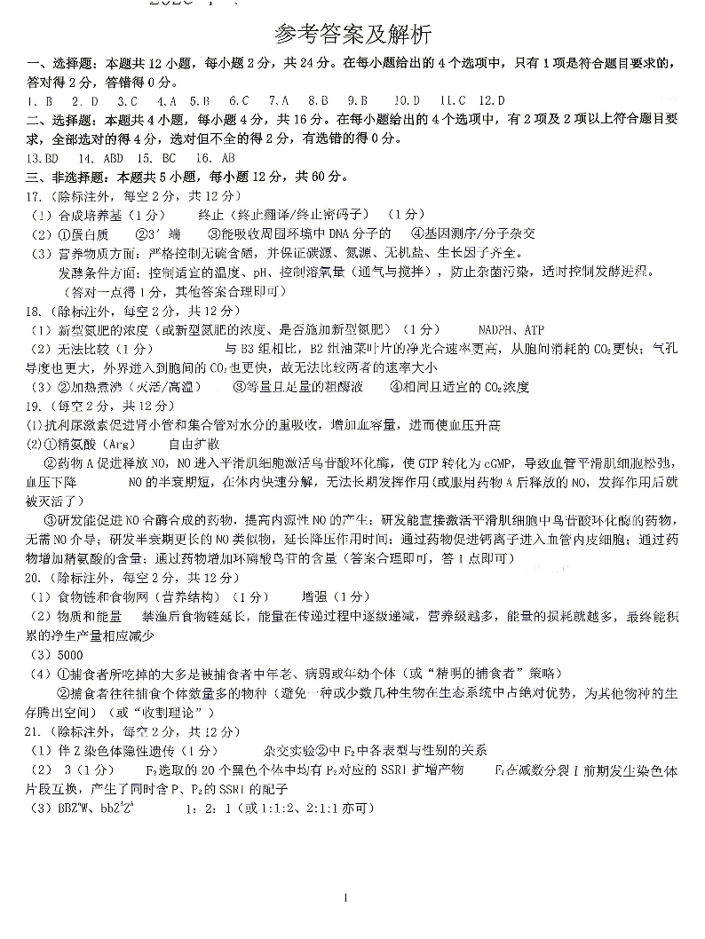 九江市2026年第二次高考模拟统一考试 生物答案.pdf