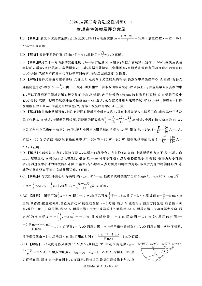 百师联盟2026届高三下学期考前适应性训练(一)物理答案.pdf