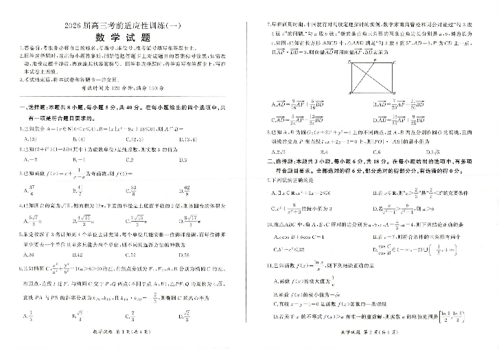 百师联盟2026届高三下学期考前适应性训练(一)数学.pdf