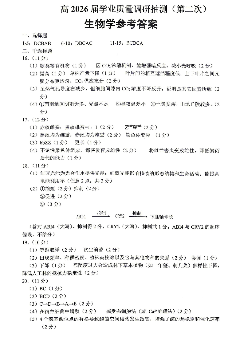 重庆九龙坡等区高2026届学业质量调研抽测 生物答案.pdf
