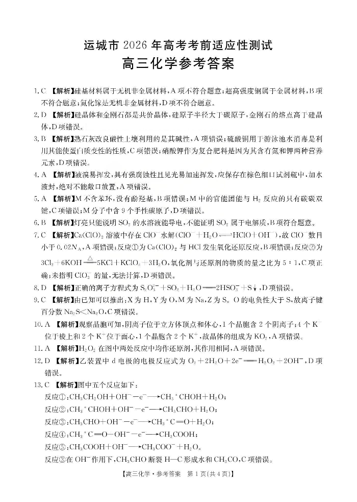 运城市2026年高考考前适应性测试 化学答案.pdf