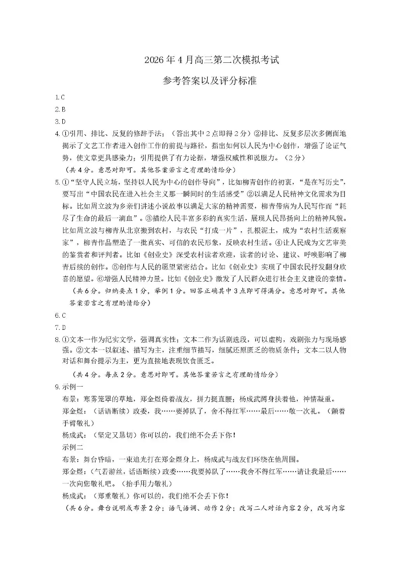 济南市2026届高三第二次模拟考试 语文答案.pdf
