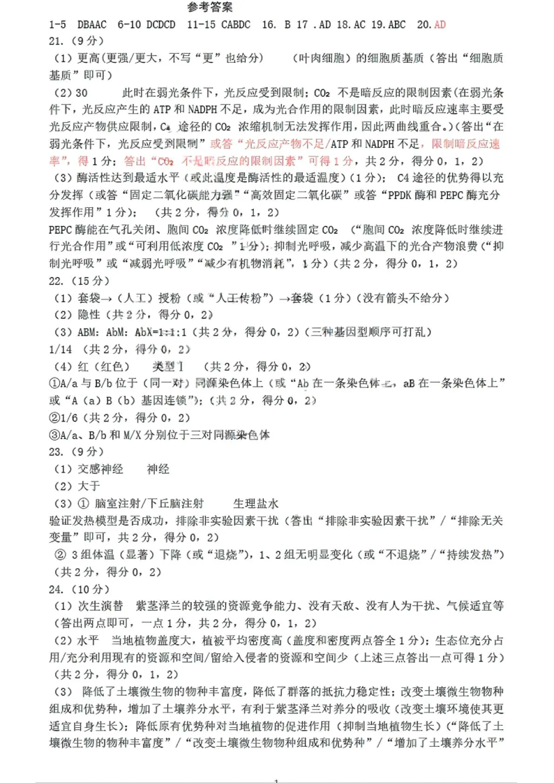 济南市2026届高三第二次模拟考试 生物答案.pdf