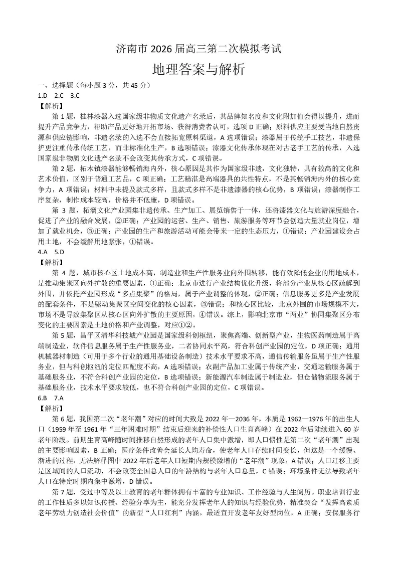 济南市2026届高三第二次模拟考试 地理答案.pdf
