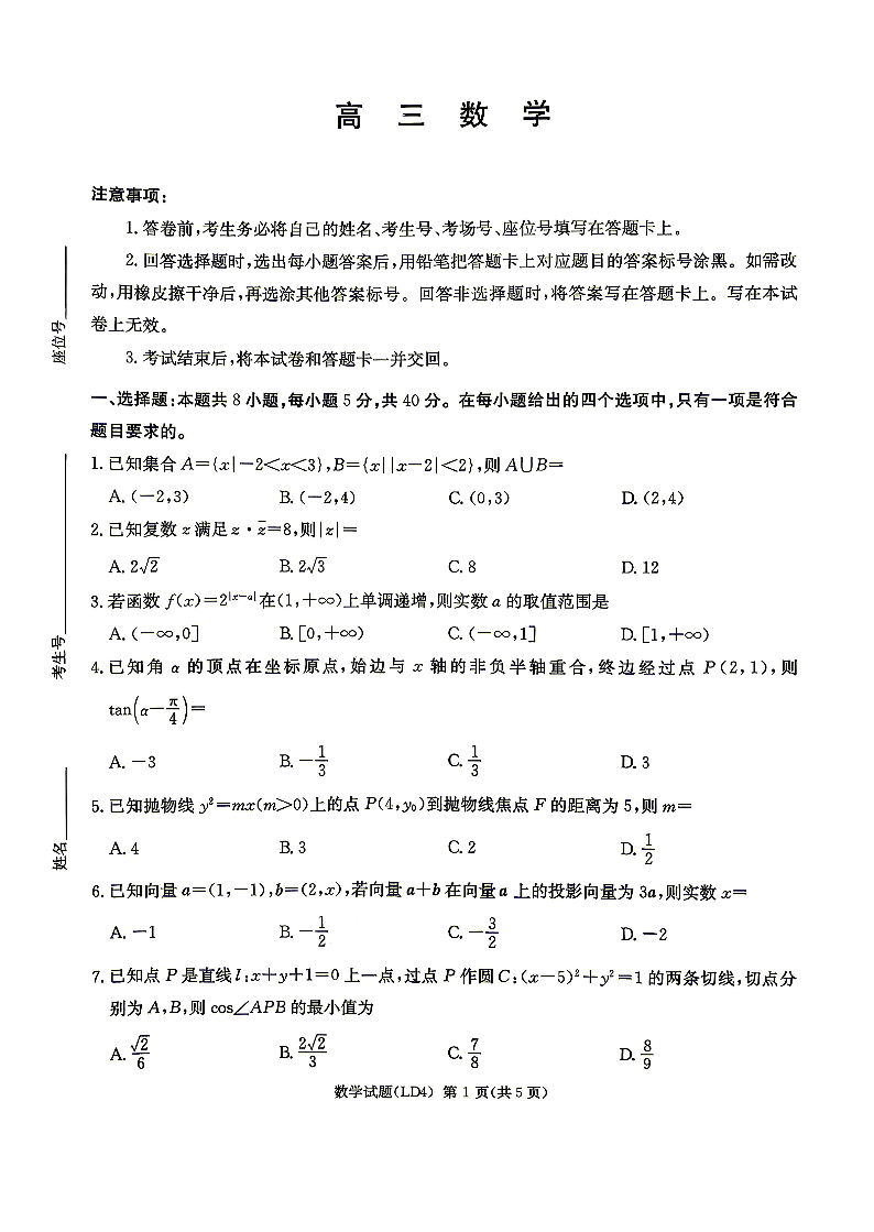 衡阳市2026届高三下学期第二次联考 数学.pdf