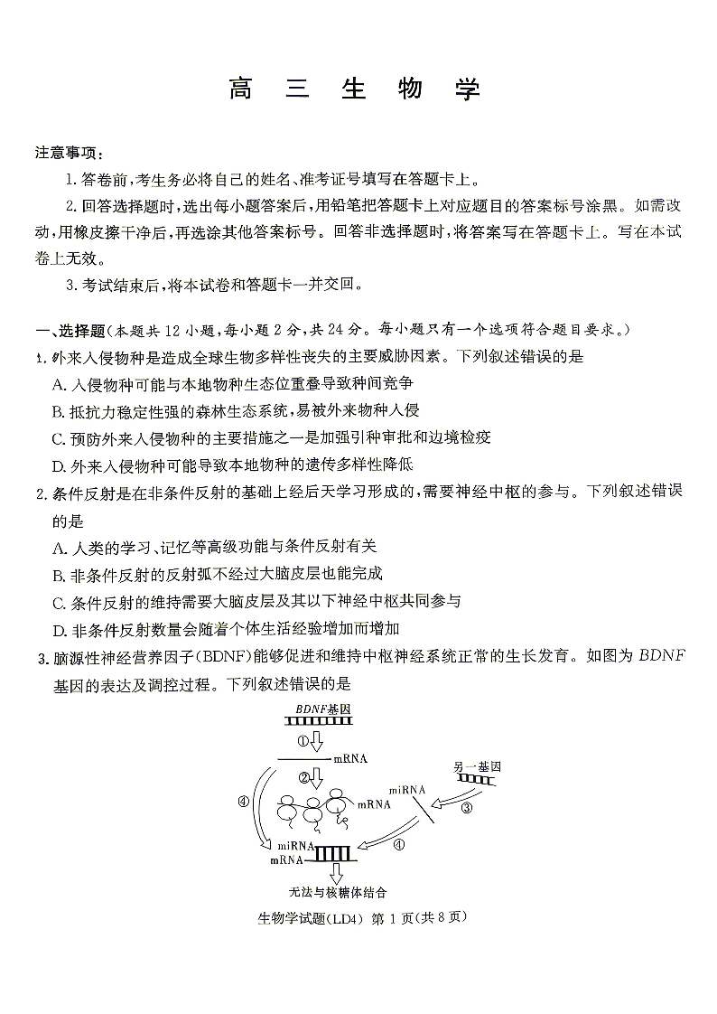 衡阳市2026届高三下学期第二次联考 生物.pdf