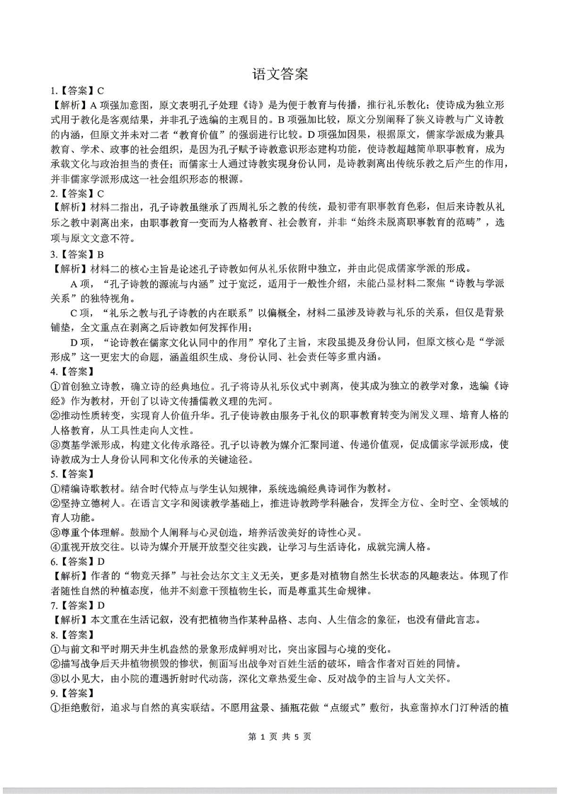 大庆市2026届高三年级第三次教学质量检测 语文答案.pdf