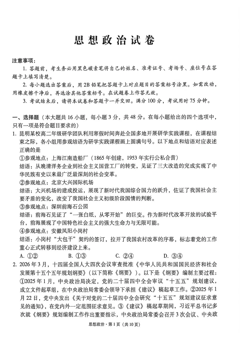 西南名校联盟2026届“3+3+3”高考备考诊断性联考(三)政治.pdf