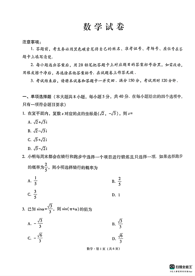 西南名校联盟2026届“3+3+3”高考备考诊断性联考(三)数学.pdf