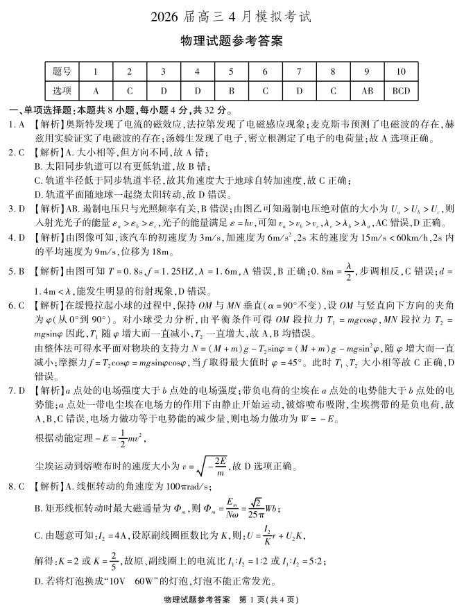 2026届高三4月模拟考试 物理答案.pdf