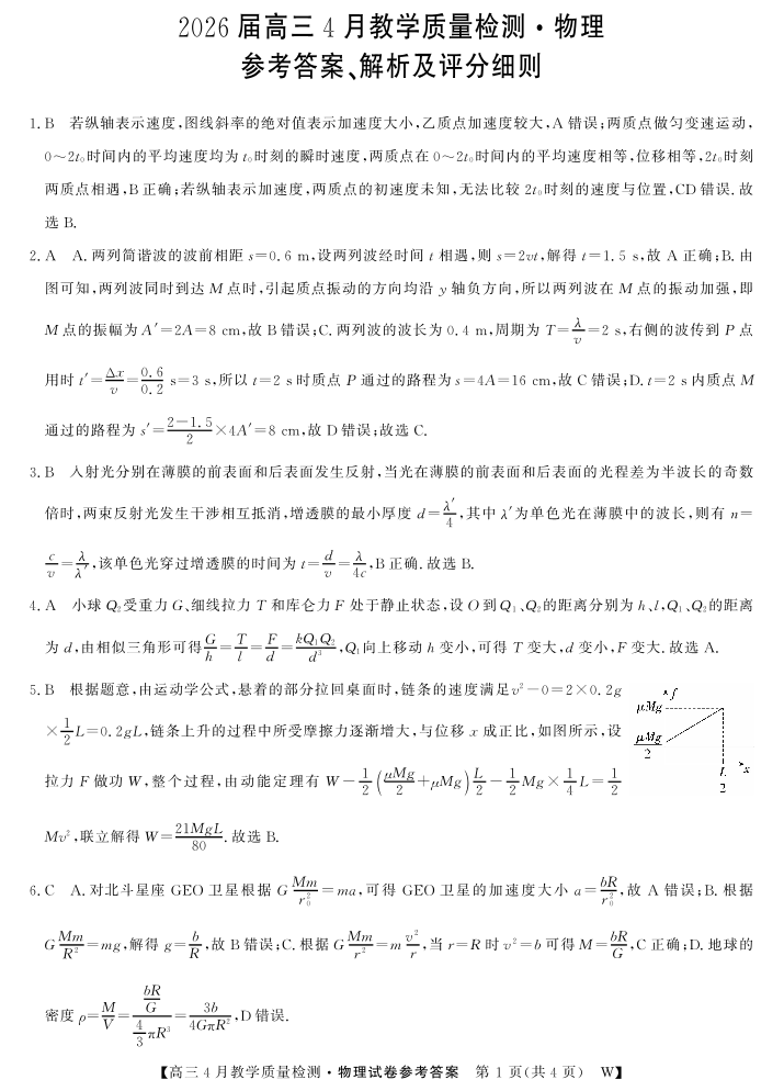 皖南八校2026届高三4月教学质量检测 物理答案.pdf