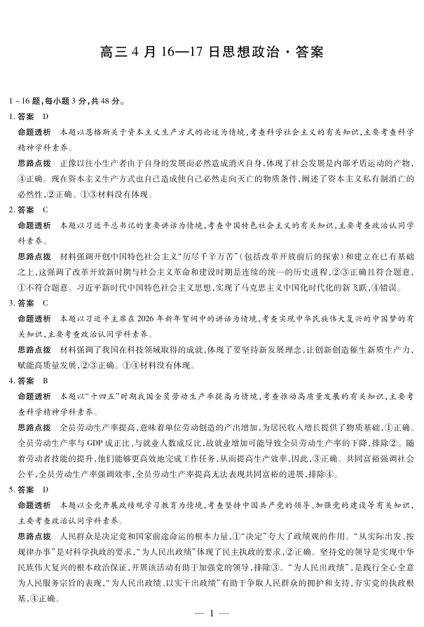 合肥市第六中学等学校2026届高三4月16—17日联考 政治答案.pdf