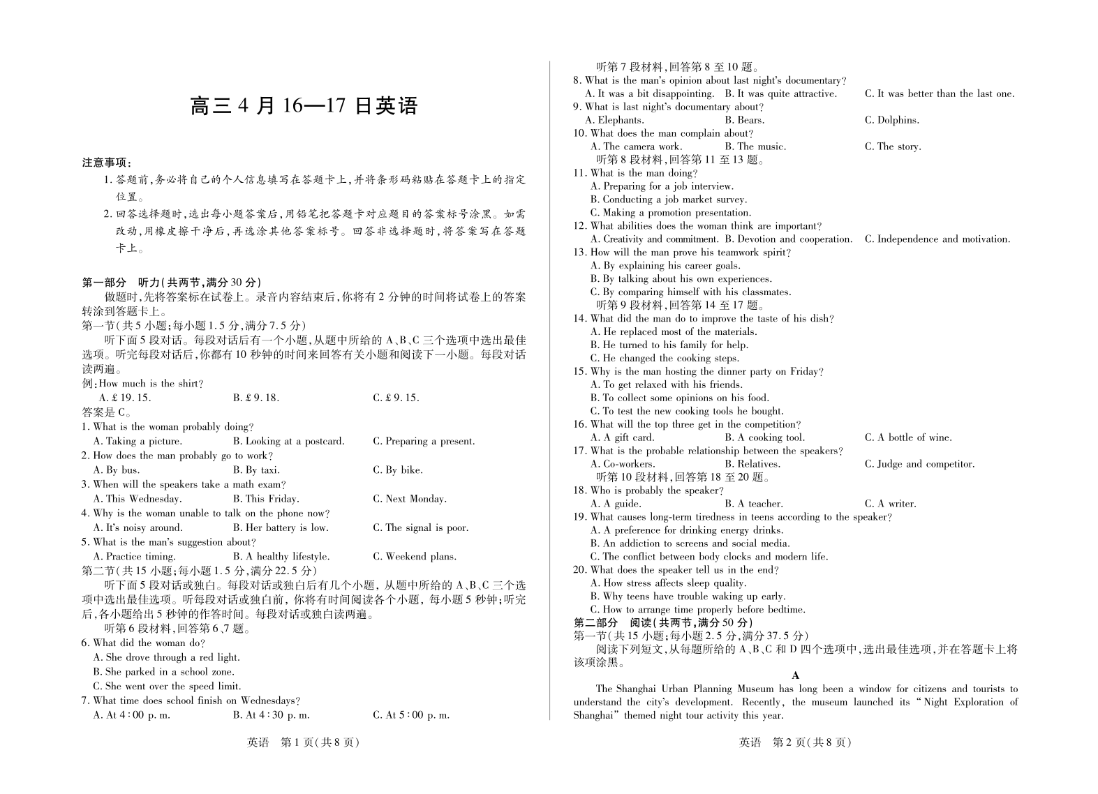 合肥市第六中学等学校2026届高三4月16—17日联考 英语.pdf