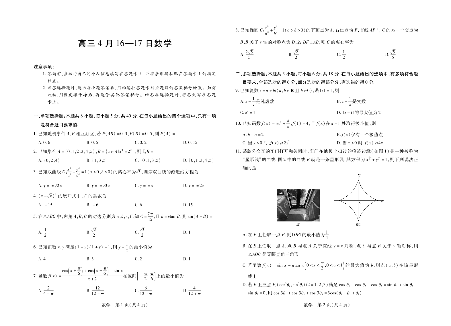 合肥市第六中学等学校2026届高三4月16—17日联考 数学.pdf