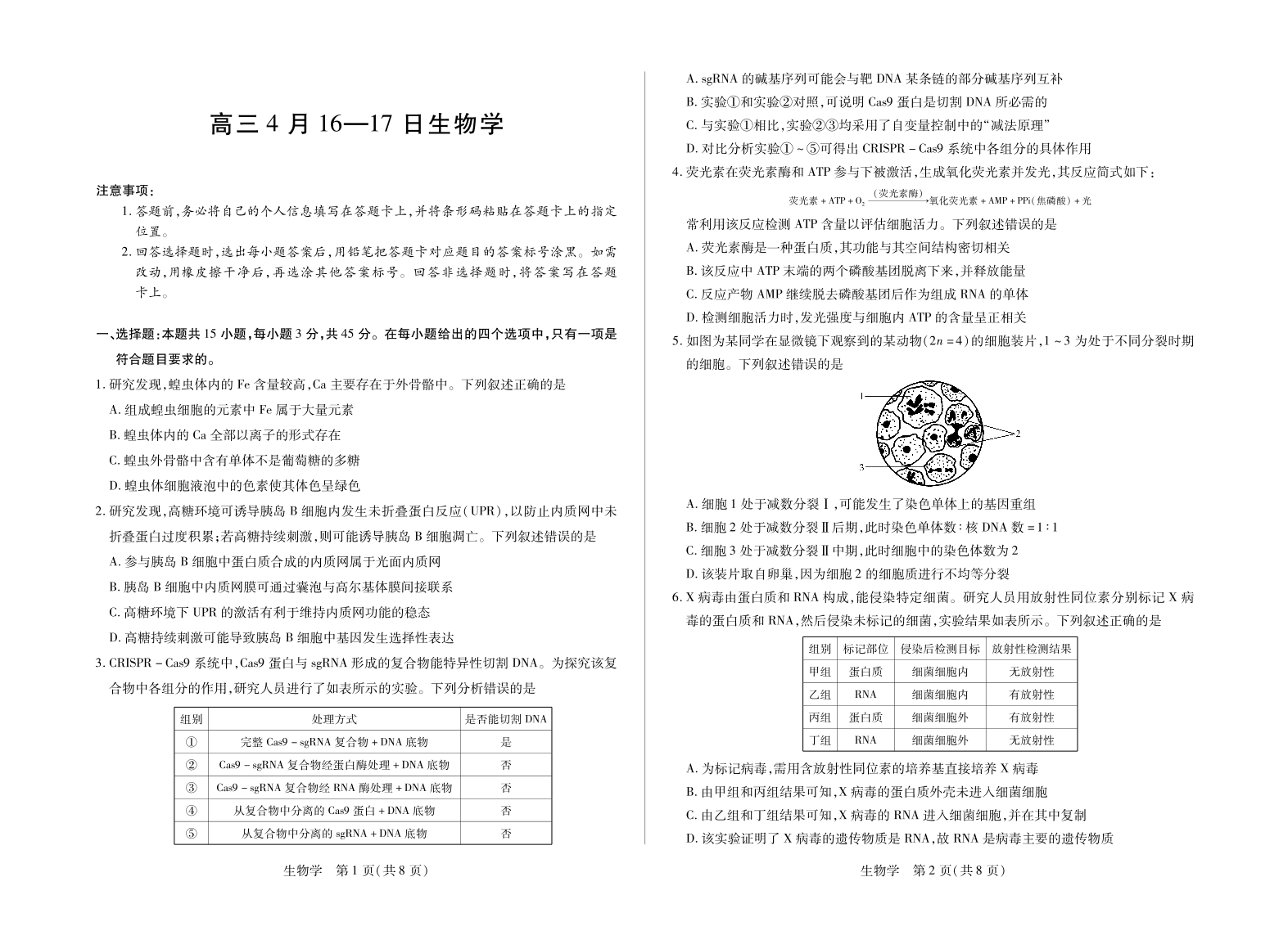 合肥市第六中学等学校2026届高三4月16—17日联考 生物.pdf