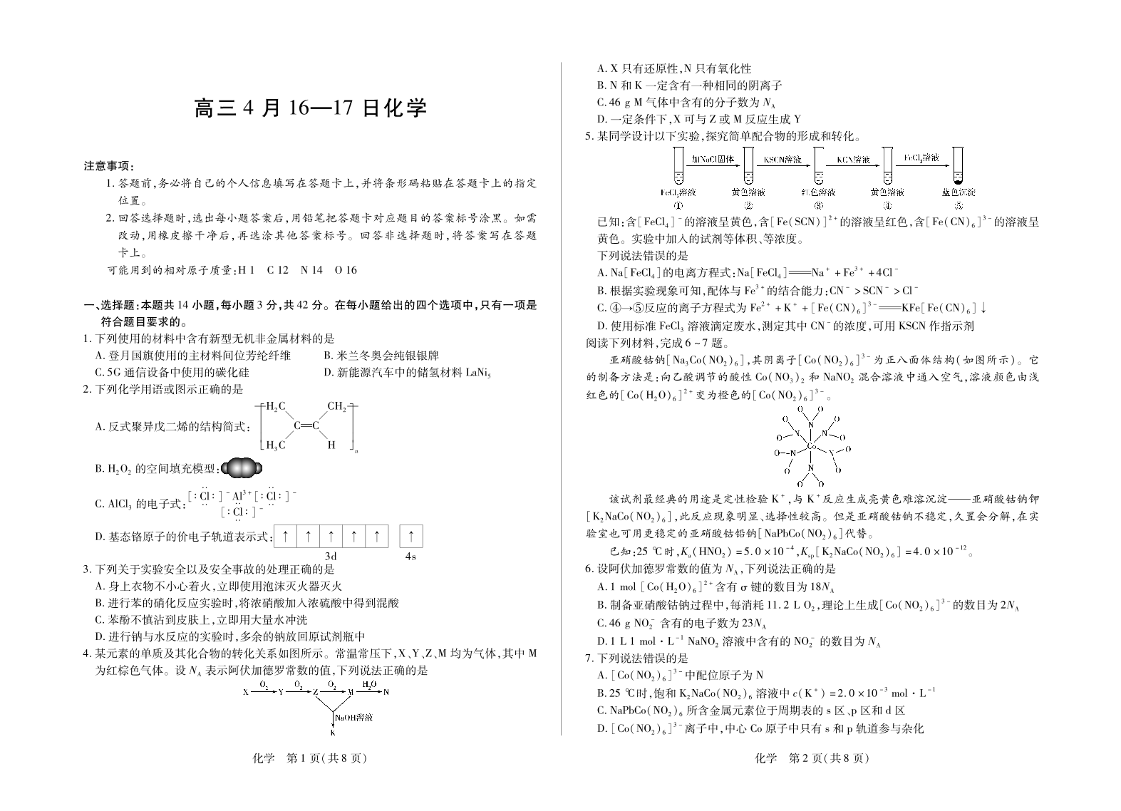 合肥市第六中学等学校2026届高三4月16—17日联考 化学.pdf
