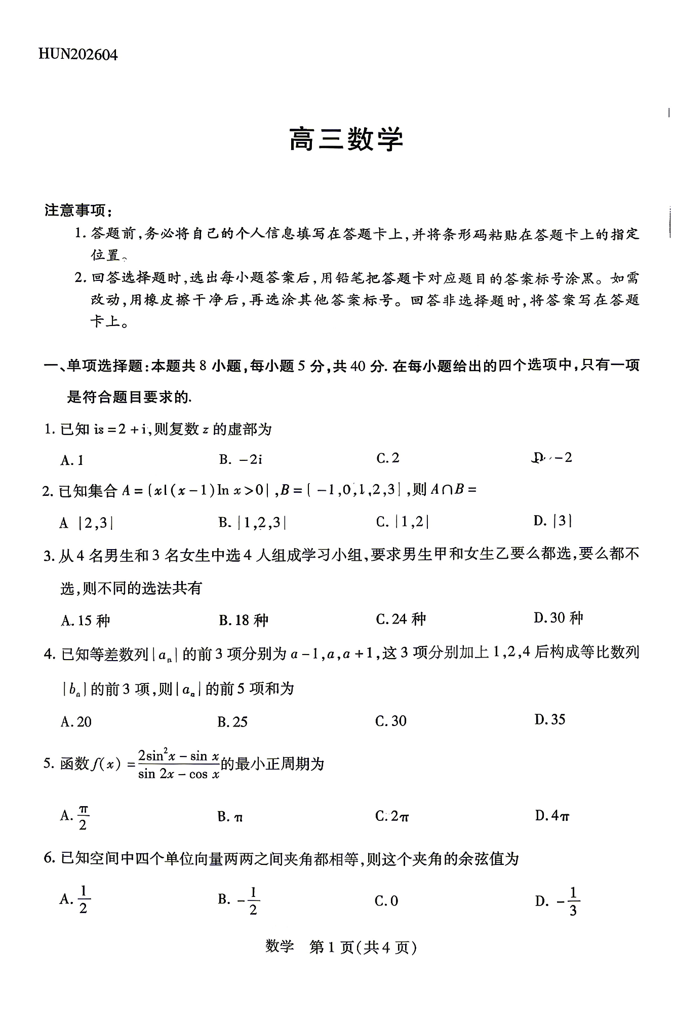 湖南省、广西壮族自治区天一大联考2026年高三年级4月联考 数学.pdf
