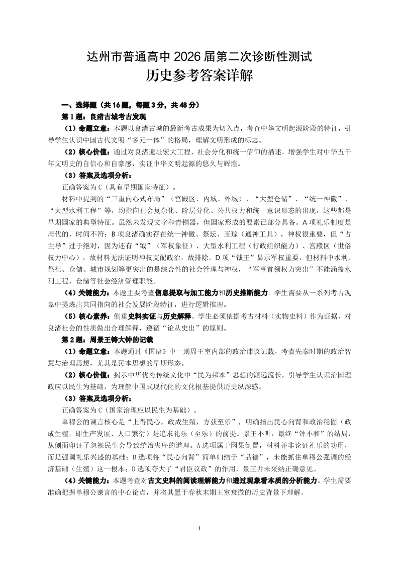 达州市普通高中2026届第二次诊断测试 历史答案详解.pdf