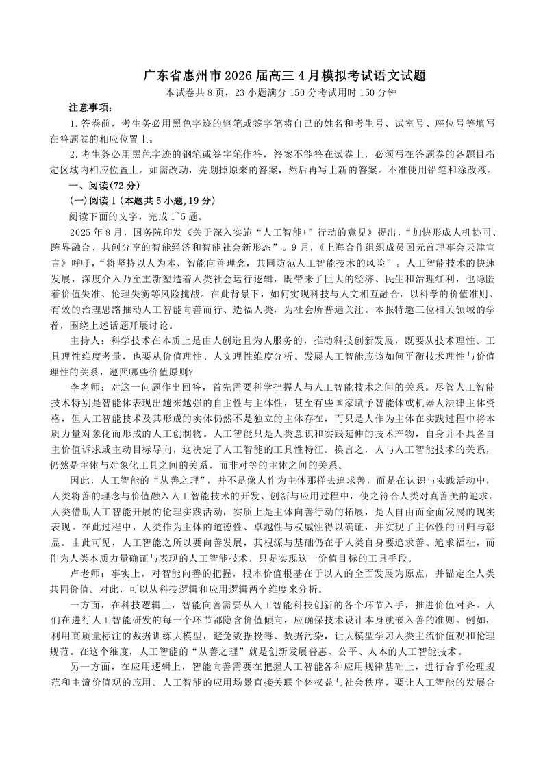 广东省惠州市、韶关市2026届高三4月练习 语文.docx