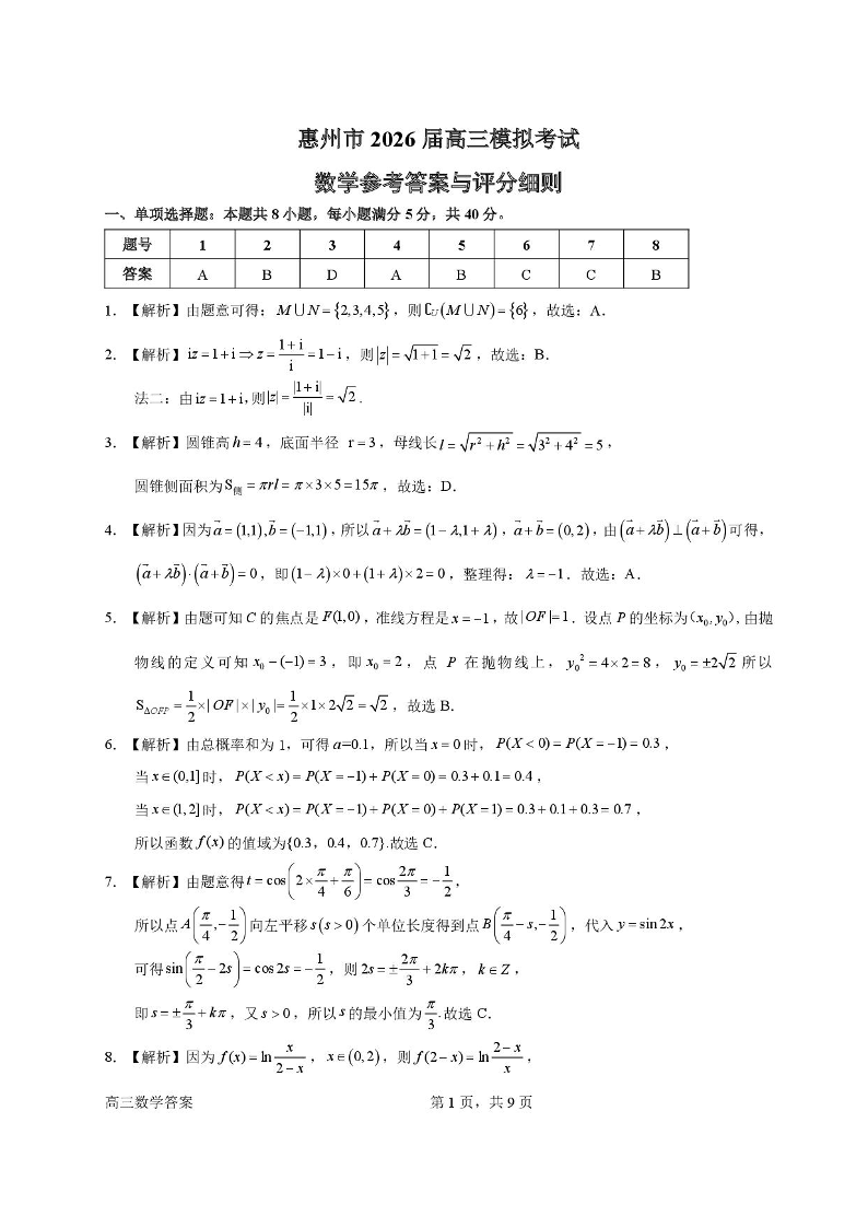 广东省惠州市、韶关市2026届高三4月练习 数学答案.pdf