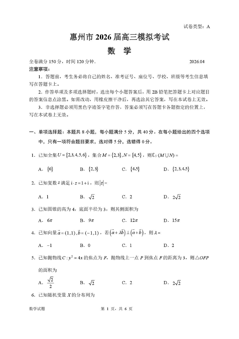 广东省惠州市、韶关市2026届高三4月练习 数学.pdf