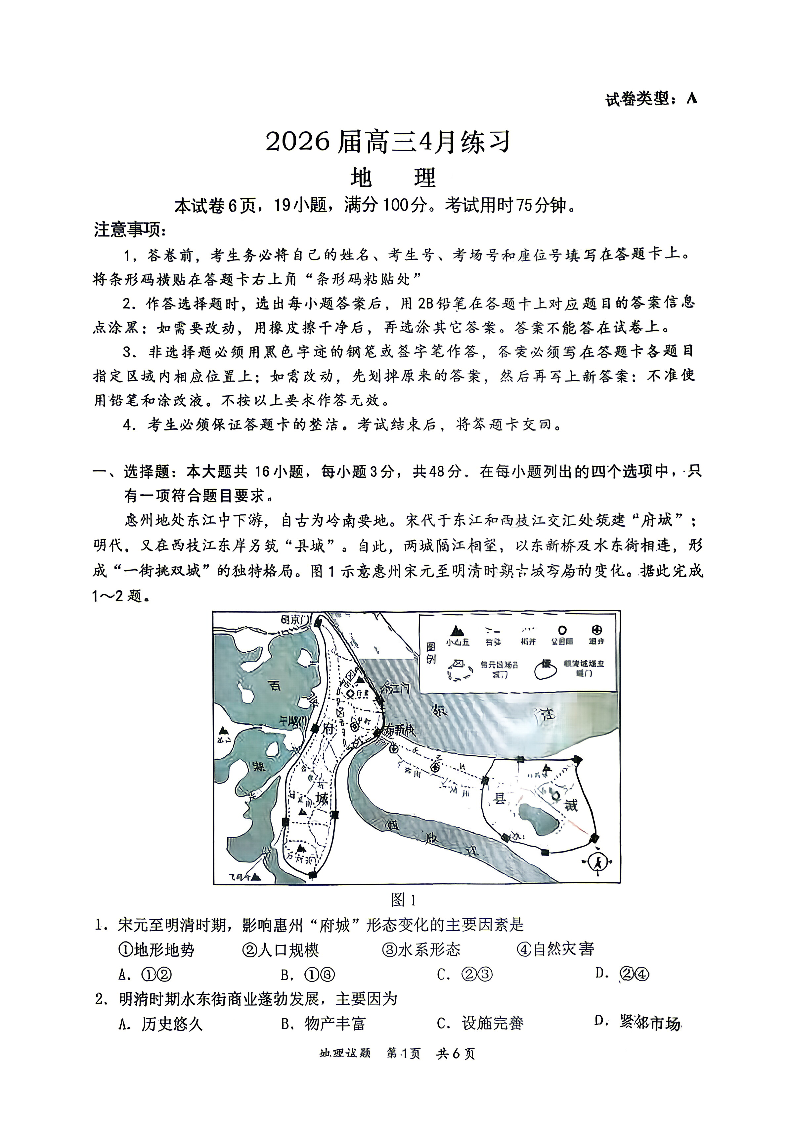 广东省惠州市、韶关市2026届高三4月练习 地理.pdf