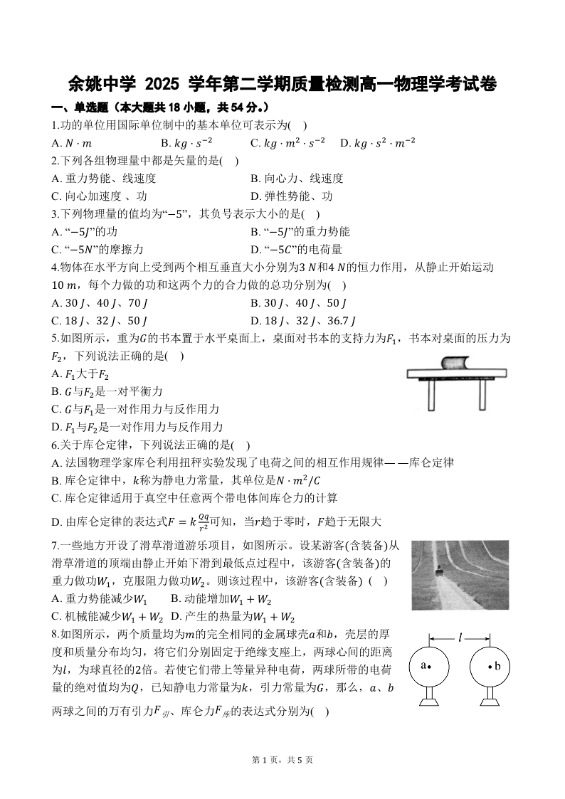 浙江省余姚中学2025-2026学年高一下学期4月质量检测 物理.pdf
