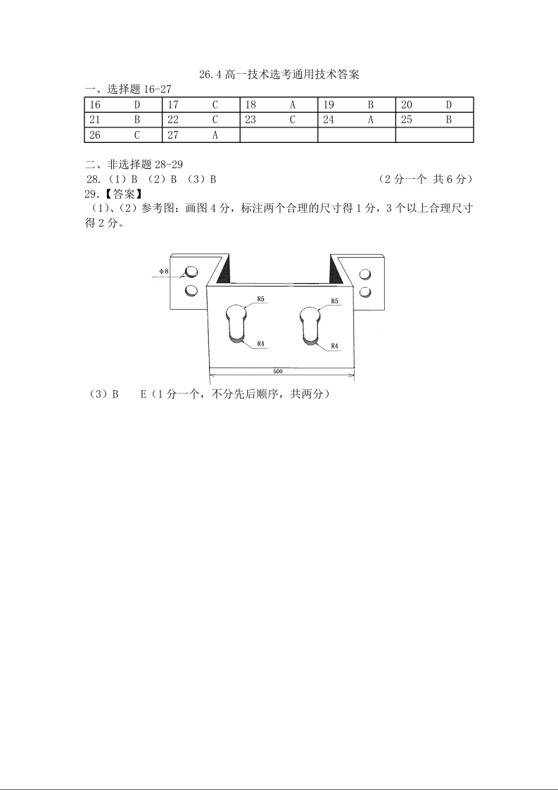 浙江省余姚中学2025-2026学年高一下学期4月质量检测 通用技术答案.docx