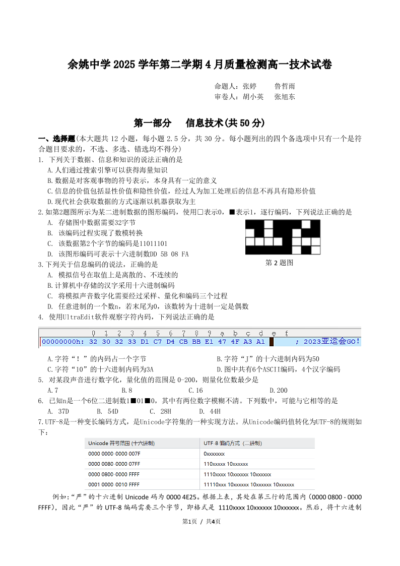 浙江省余姚中学2025-2026学年高一下学期4月质量检测 技术.pdf