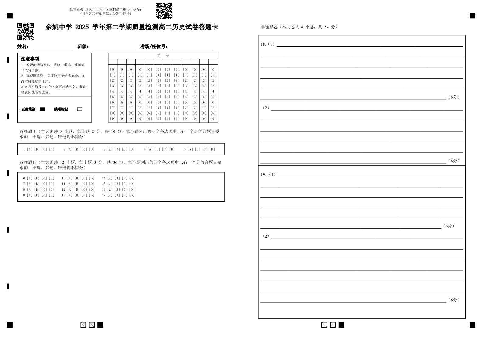 浙江省余姚中学2025-2026学年高二下学期4月质量检测 历史答题卡.pdf