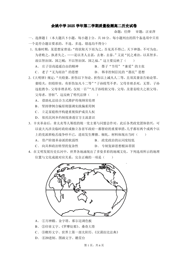浙江省余姚中学2025-2026学年高二下学期4月质量检测 历史.pdf