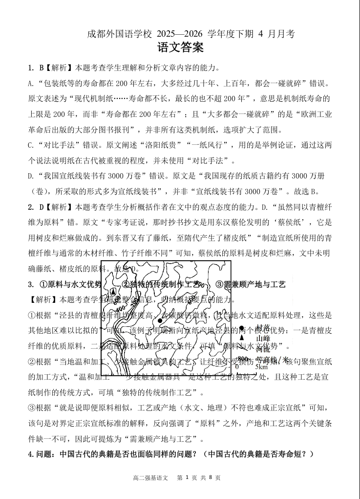 成都外国语学校2025-2026学年高二下学期4月月考 语文答案.docx