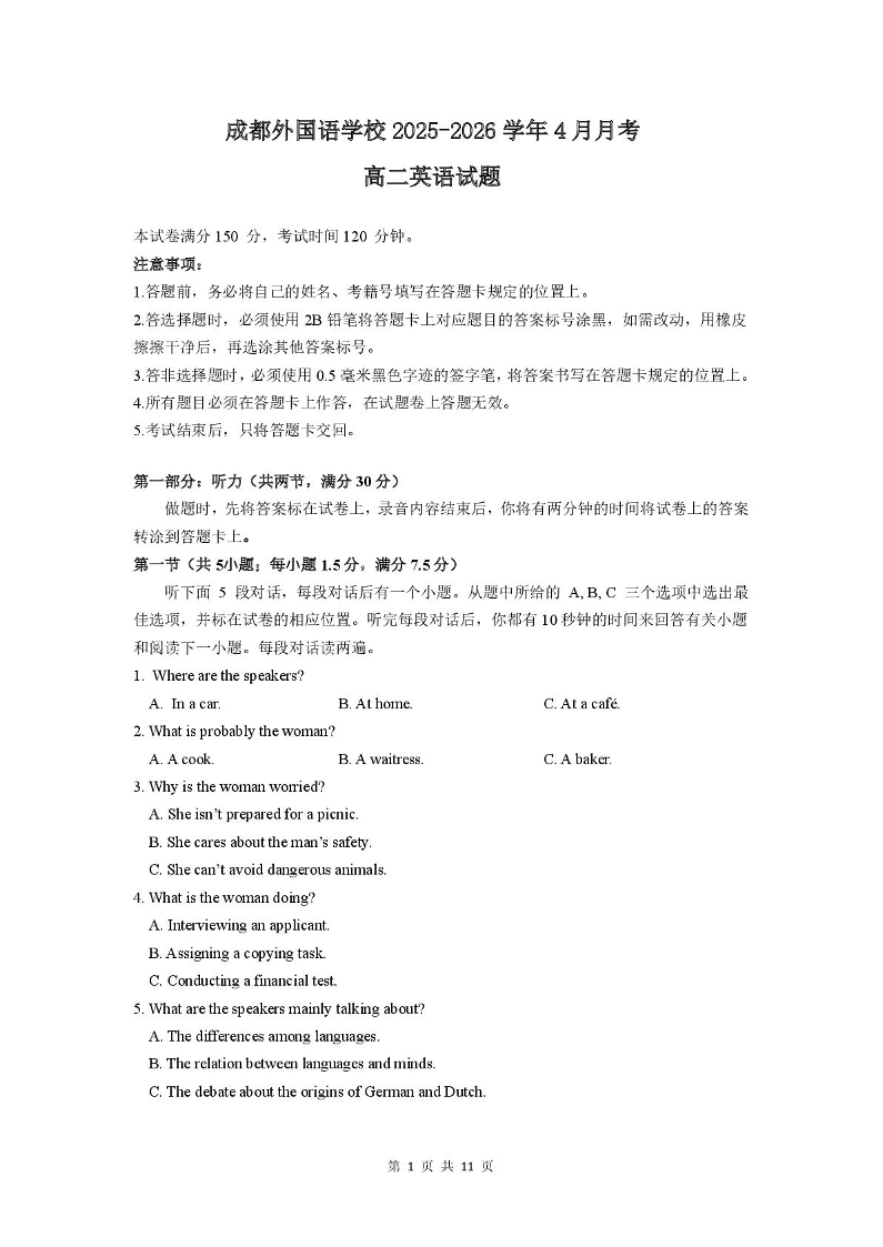 成都外国语学校2025-2026学年高二下学期4月月考 英语.pdf