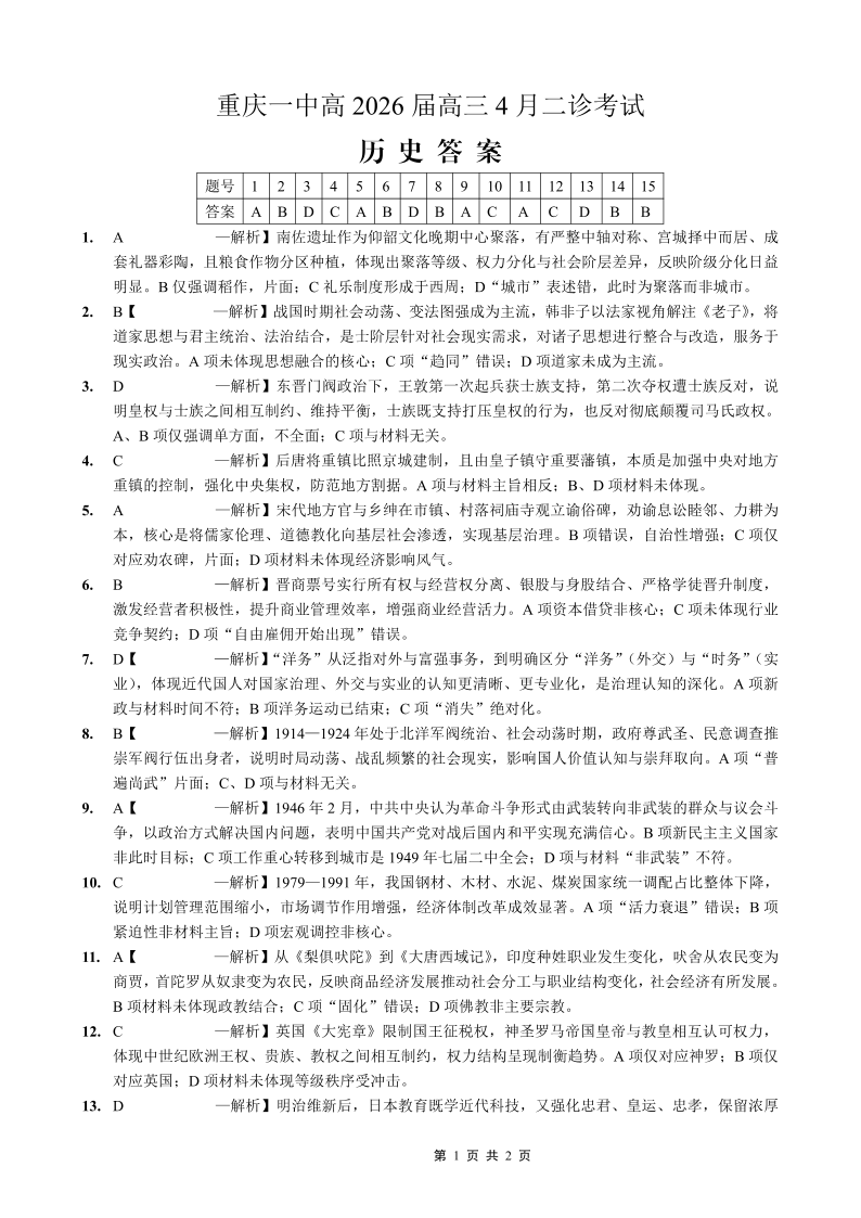 重庆一中高2026届高三下学期4月二诊考试 历史答案.pdf