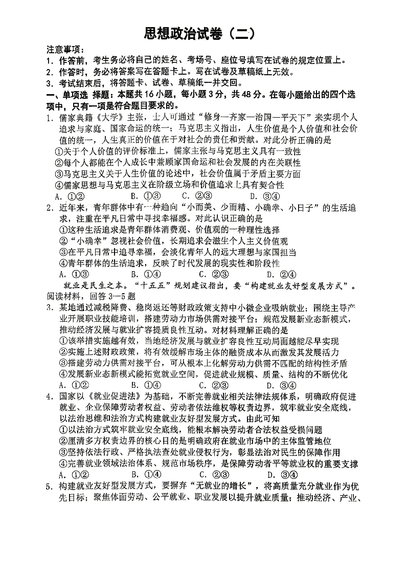 重庆八中高2026届4月强化训练(二)政治.pdf