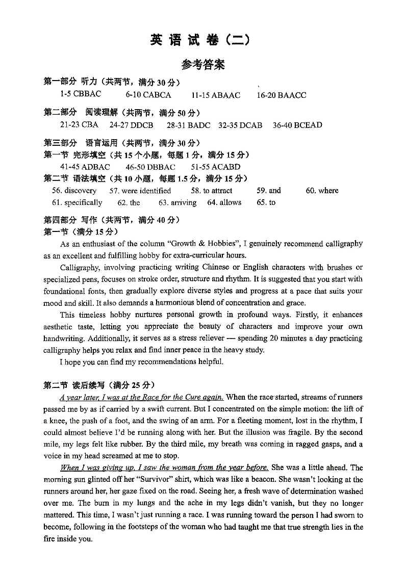 重庆八中高2026届4月强化训练(二)英语答案.pdf