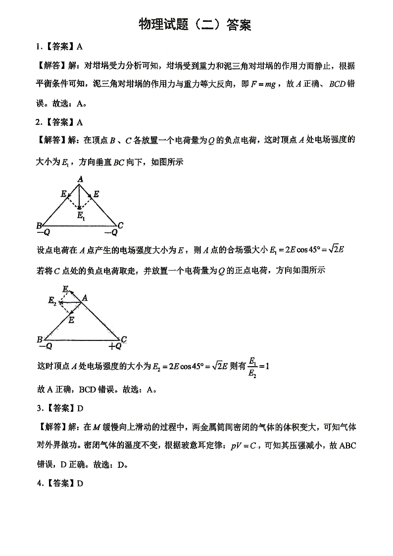重庆八中高2026届4月强化训练(二)物理答案.pdf