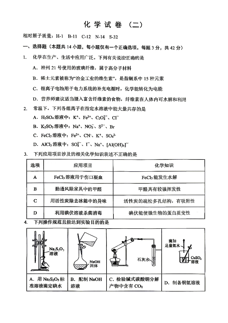 重庆八中高2026届4月强化训练(二)化学.pdf