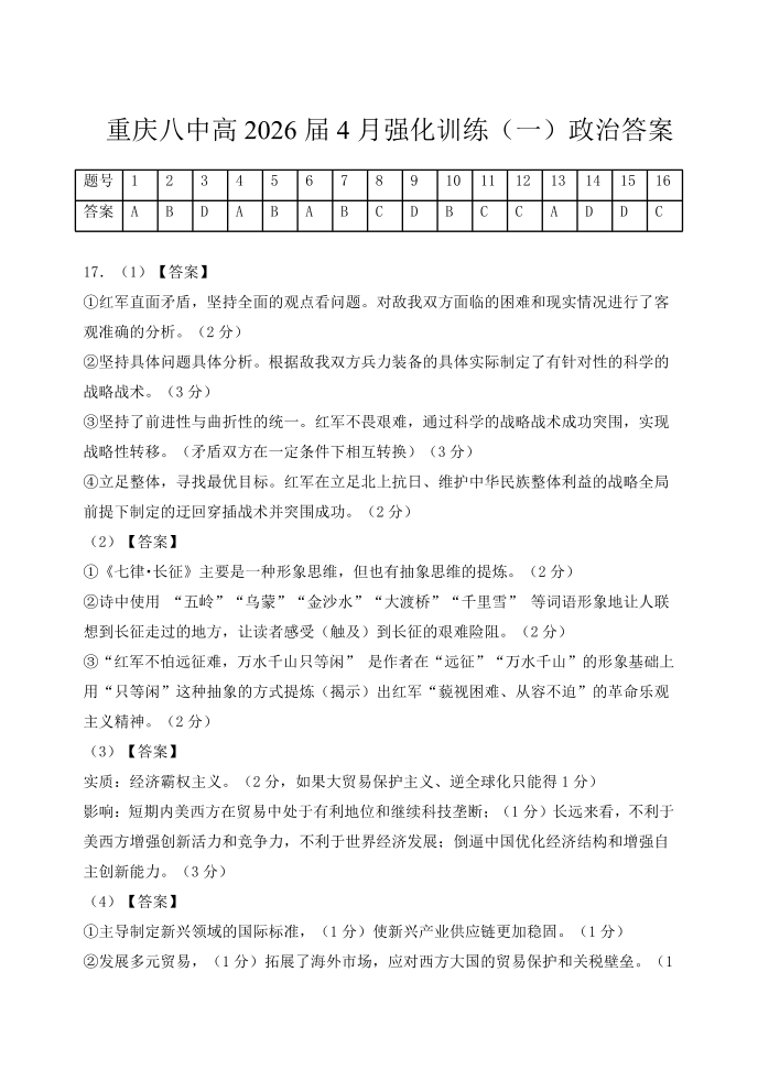 重庆八中高2026届4月强化训练(一)政治答案.pdf