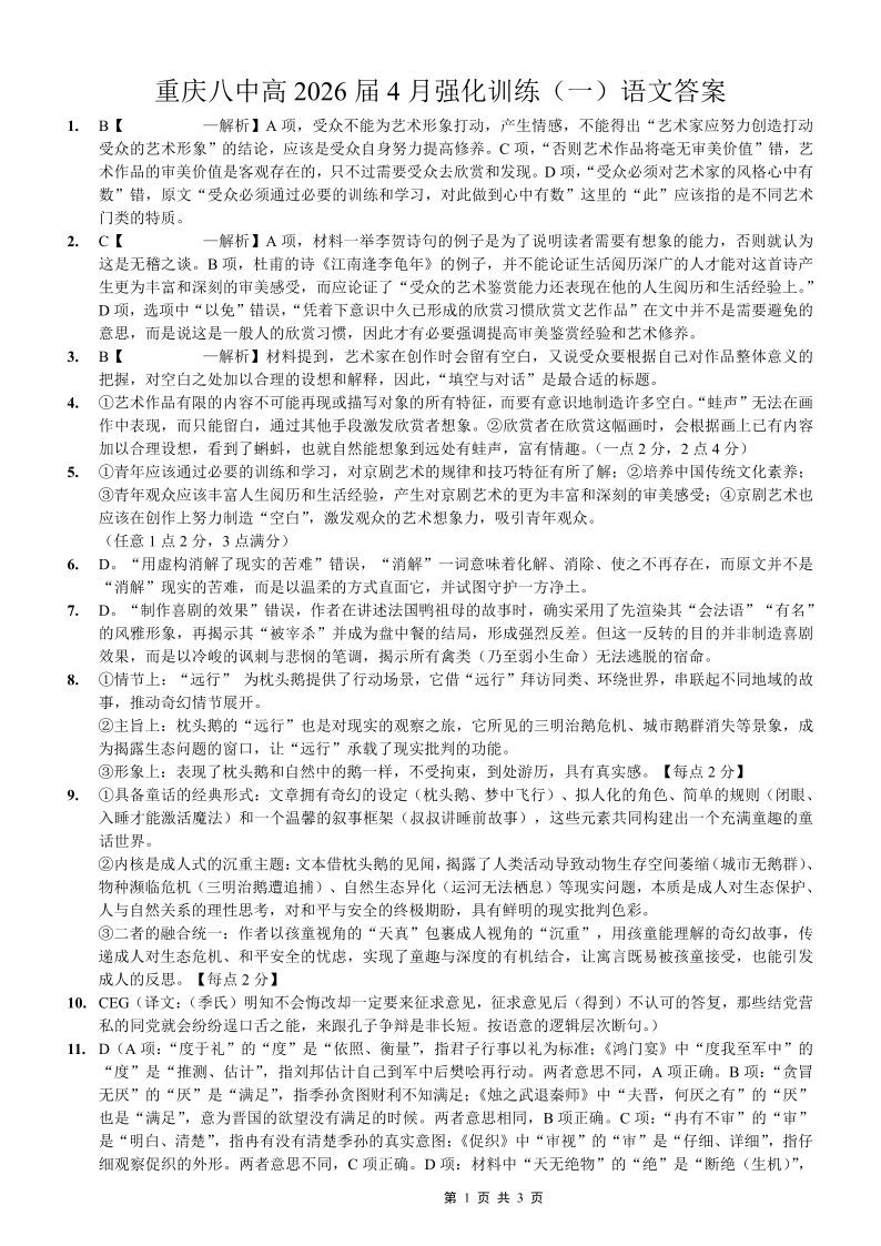 重庆八中高2026届4月强化训练(一)语文答案.pdf
