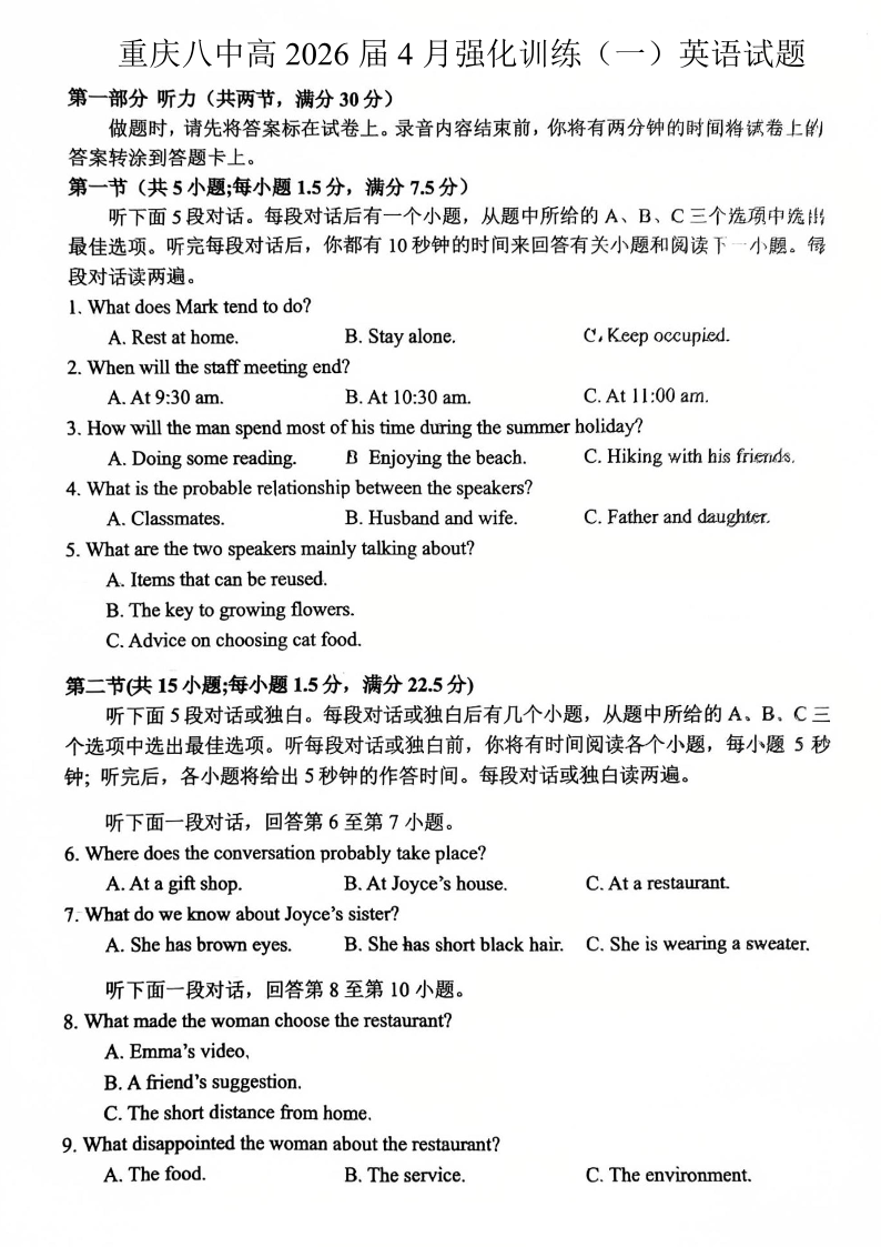 重庆八中高2026届4月强化训练(一)英语.pdf