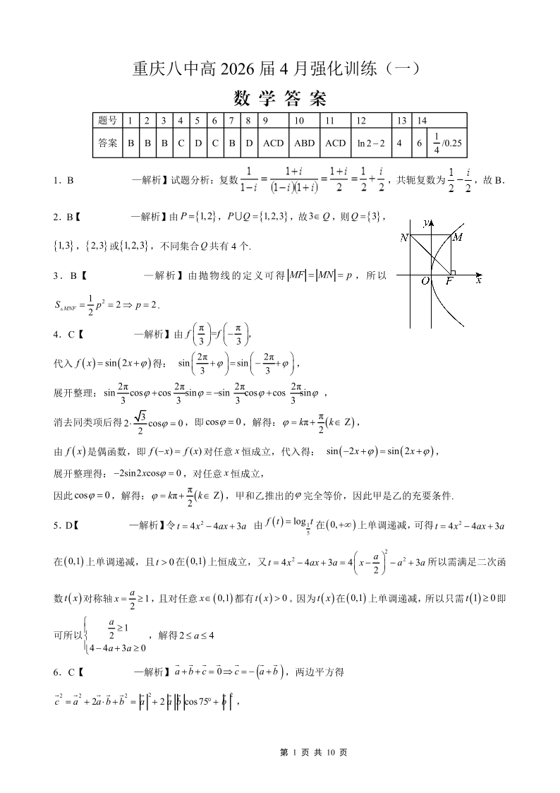 重庆八中高2026届4月强化训练(一)数学答案.pdf
