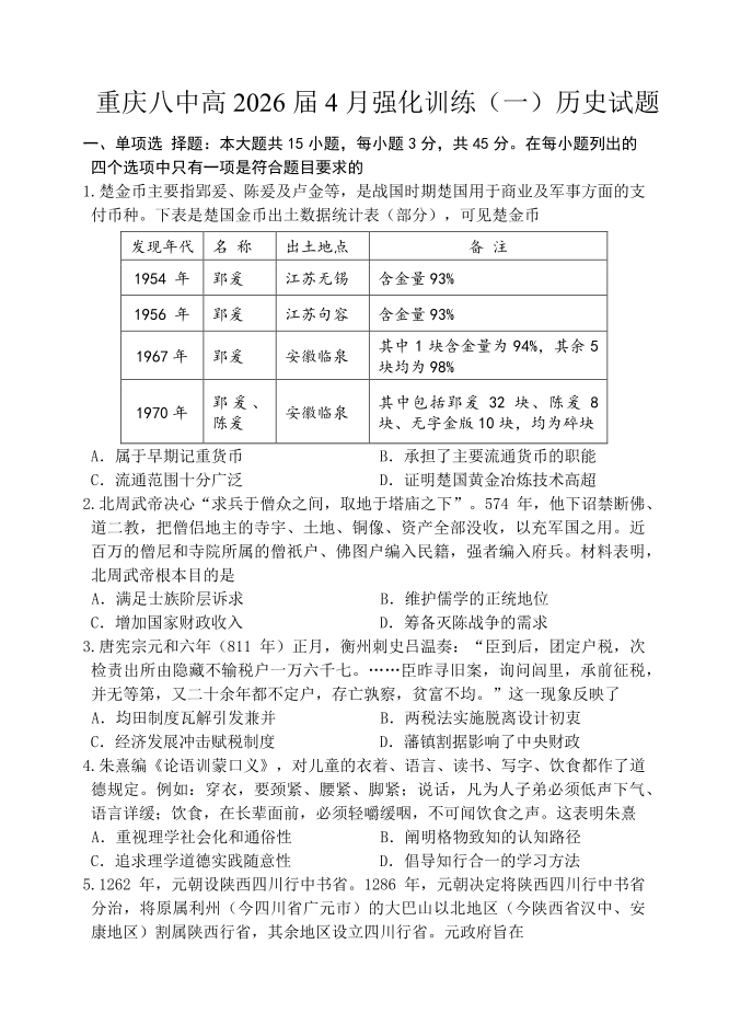 重庆八中高2026届4月强化训练(一)历史.pdf