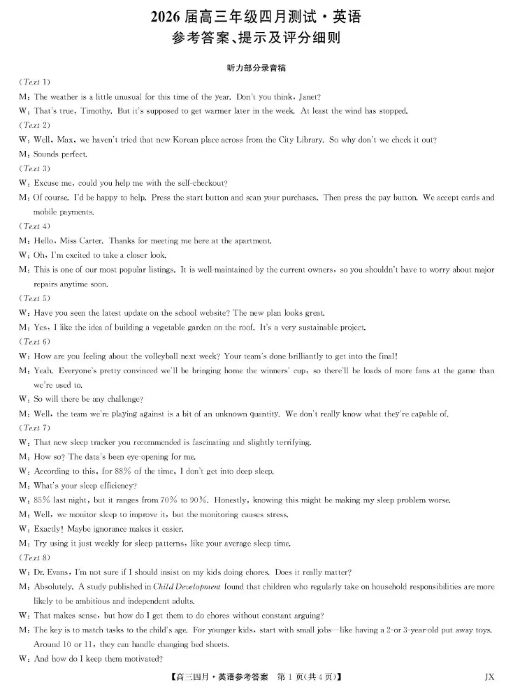 江西省重点中学盟校2026届高三年级4月测试 英语答案.pdf