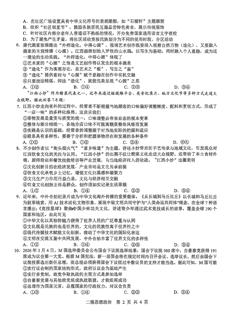 上饶市2026届高三年级第二次高考模拟考试 政治.pdf