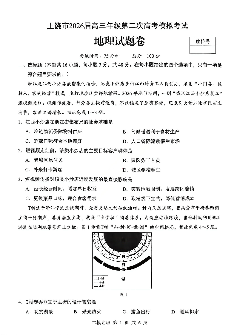 上饶市2026届高三年级第二次高考模拟考试 地理.pdf