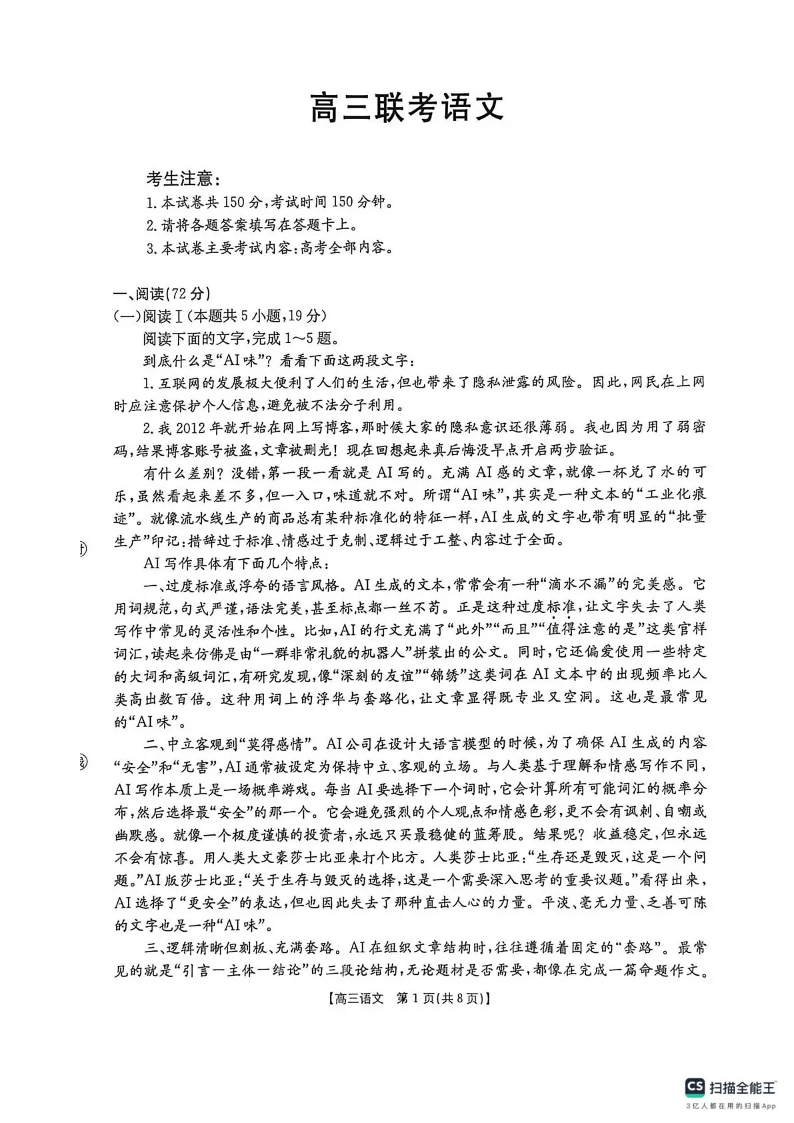甘肃省2026届高三下学期4月联考 语文.pdf
