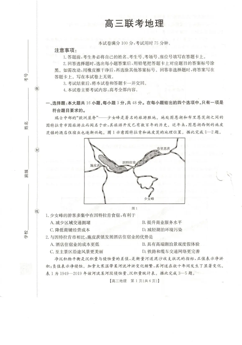 甘肃省2026届高三下学期4月联考 地理.pdf
